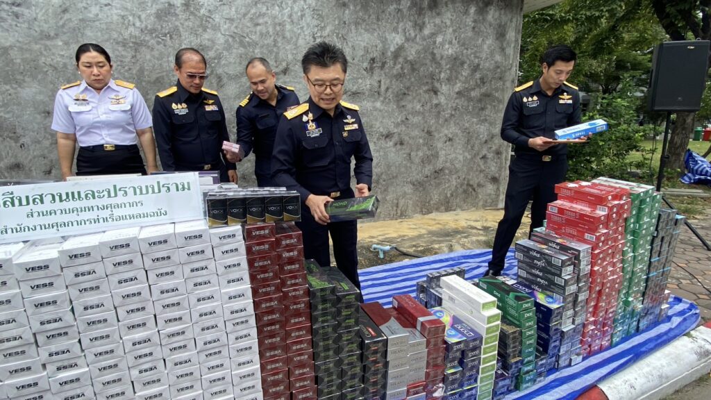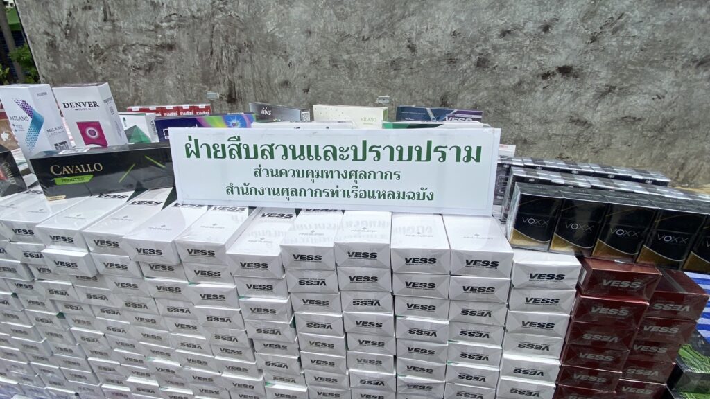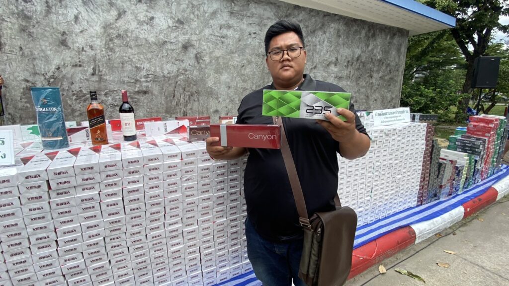 - บุหรี่ไทยเข้าข่ายละเมิดเครื่องหมายการค้า จำนวน 33 คอตตอน (6,600 มวน)