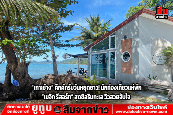 วันหยุดนี้ “เกาะช้าง” จังหวัดตราด เนืองแน่นไปด้วยนักท่องเที่ยวทั้งไทยและต่างชาติ ที่แห่มาสัมผัสหาดทรายขาว น้ำทะเลใส และบรรยากาศธรรมชาติสุดบริสุทธิ์ โดยหนึ่งในที่พักยอดนิยมที่กลายเป็นกระแสฮอตสุดบนเกาะ คือ “เมจิก รีสอร์ท” ที่พักติดทะเลวิวหลักล้าน สวยสงบแต่ครบทุกความสุขของการพักผ่อนอย่างแท้จริง