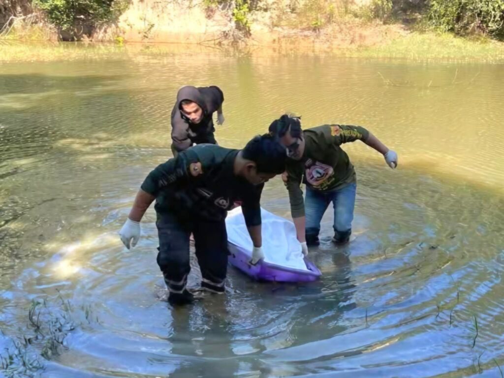 ที่เกิดเหตุพบศพ นายประสิทธิ์ ทองน้อย อายุ 61 ปี นอนคว่ำหน้าอยู่ในหนองน้ำ ห่างจากฝั่งประมาณ 2 เมตร เจ้าหน้าที่จึงช่วยกันนำร่างขึ้นจากน้ำ