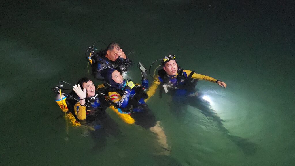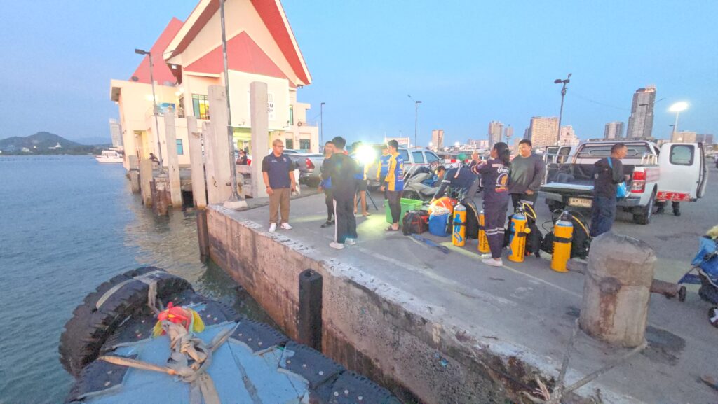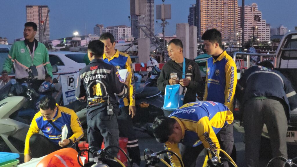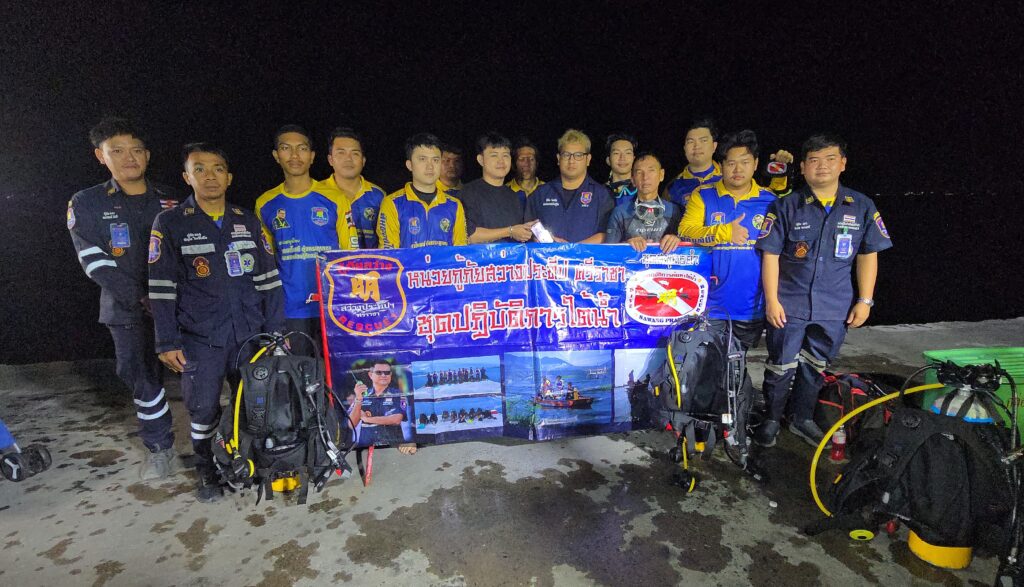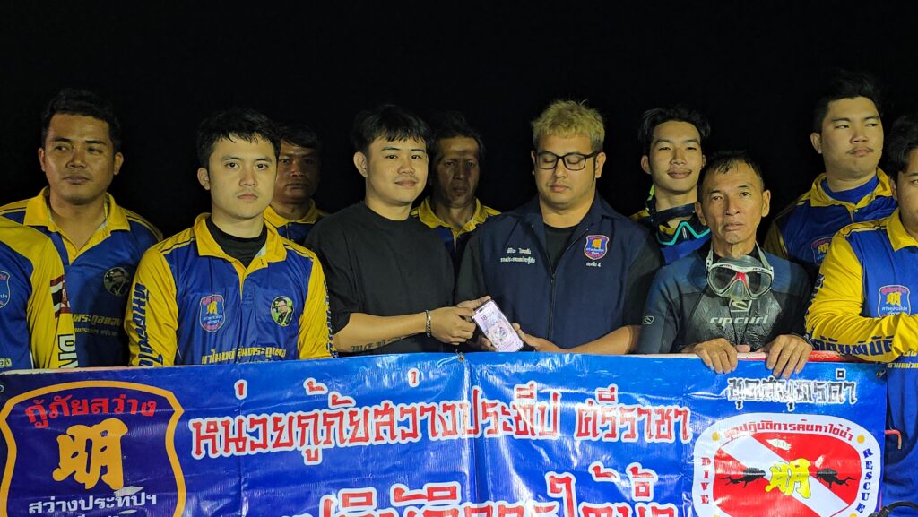 จากนั้น ทีมกู้ภัยชุด “สมุทรดำ” จำนวน 4 นาย ได้เตรียมพร้อมลงปฏิบัติการค้นหา แม้สภาพน้ำทะเลจะค่อนข้างเย็น แต่โชคดีที่น้ำทะเลค่อนข้างใส ทำให้ทัศนวิสัยใต้น้ำดี ไม่เป็นอุปสรรคต่อการค้นหา นายพิริยะ ไทยทัน รองประธานหน่วยกู้ภัยสว่างประทีปศรีราชา เปิดเผยว่า จุดที่โทรศัพท์ตกลงไปมีความลึกประมาณ 5 เมตร