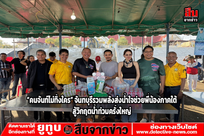 จังหวัดจันทบุรีจับมือทุกภาคส่วน เปิดจุดรับบริจาคสิ่งของช่วยเหลือผู้ประสบภัยน้ำท่วมภาคใต้ ภายใต้แนวคิด “คนจันท์ไม่ทิ้งใคร – คนไทยไม่ทิ้งกัน” เชิญชวนชาวจันทบุรีร่วมส่งต่อความห่วงใยถึงพี่น้องใต้ที่กำลังเผชิญวิกฤตน้ำท่วมรุนแรงจากมรสุมตะวันออกเฉียงเหนือ