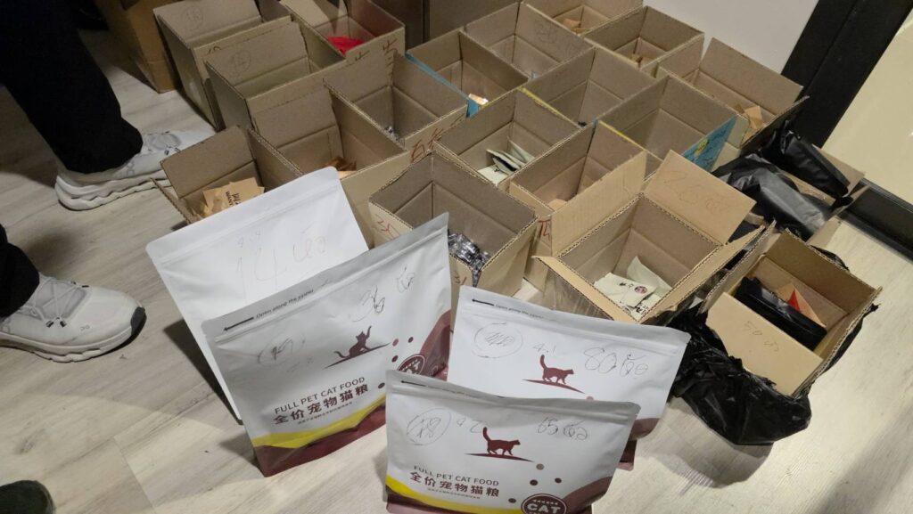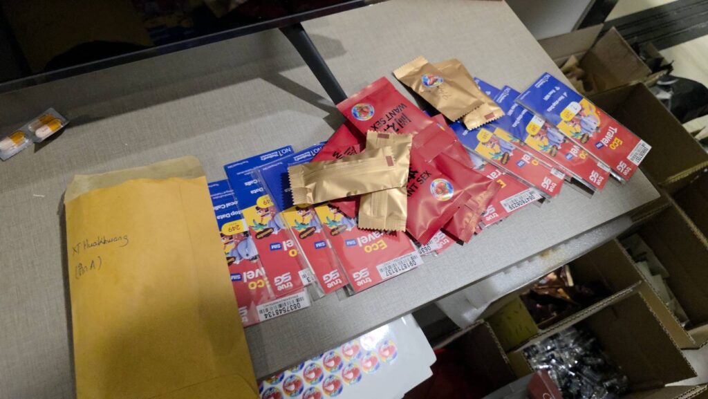 จากการตรวจค้นภายในห้องพัก เจ้าหน้าที่พบของกลางสำคัญคือ พอตบุหรี่ไฟฟ้าผสมสารอีโทมิเดท พร้อมใช้งานกว่า 1,000 ชิ้น และอุปกรณ์การผลิตอีกจำนวนมาก โดยพอตบุหรี่ไฟฟ้าเหล่านี้มีราคาส่งต่อให้ผู้เสพสูงถึงชิ้นละประมาณ 600 บาท คิดเป็นมูลค่ารวมของกลางกว่า 600,000 บาท