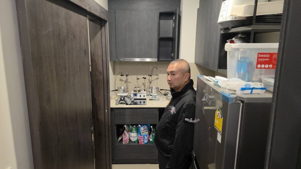 พลตำรวจโท อาชยน ไกรทอง ผู้บัญชาการตำรวจปราบปรามยาเสพติด เปิดเผยถึงผลการปฏิบัติการครั้งสำคัญในการกวาดล้างอาชญากรรมข้ามชาติ โดยเจ้าหน้าที่ได้เข้าบุกตรวจค้นห้องชุดในคอนโดมิเนียมแห่งหนึ่งย่านห้วยขวาง กรุงเทพมหานคร และจับกุมชายชาวจีน อายุ 30 ปี ผู้ต้องหาซึ่งรับหน้าที่เป็นผู้ผลิตพอตบุหรี่ไฟฟ้าผิดกฎหมาย