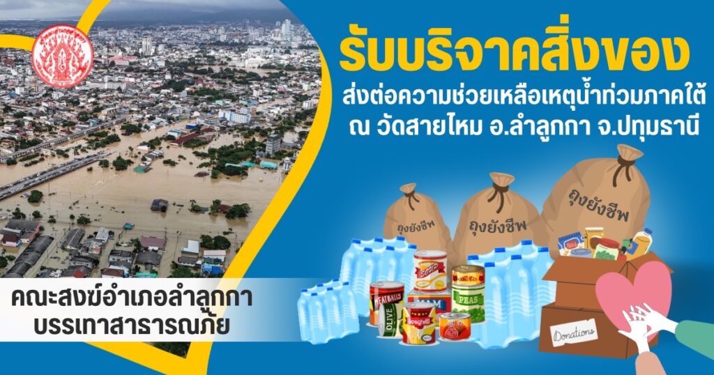 เมื่อวันที่ 26 พฤศจิกายน 2568 ณ วัดสายไหม อำเภอลำลูกกา จังหวัดปทุมธานี พระครูโสภณภัทรเวทย์ (หลวงพ่ออ๊อด) เจ้าคณะอำเภอลำลูกกา และเจ้าอาวาสวัดสายไหมเปิดเผยว่า คณะสงฆ์อำเภอลำลูกกา ได้ร่วมกับลูกศิษย์และกลุ่มจิตอาสา จัดตั้ง “ศูนย์รับ–ส่งต่อความช่วยเหลือผู้ประสบอุทกภัย”