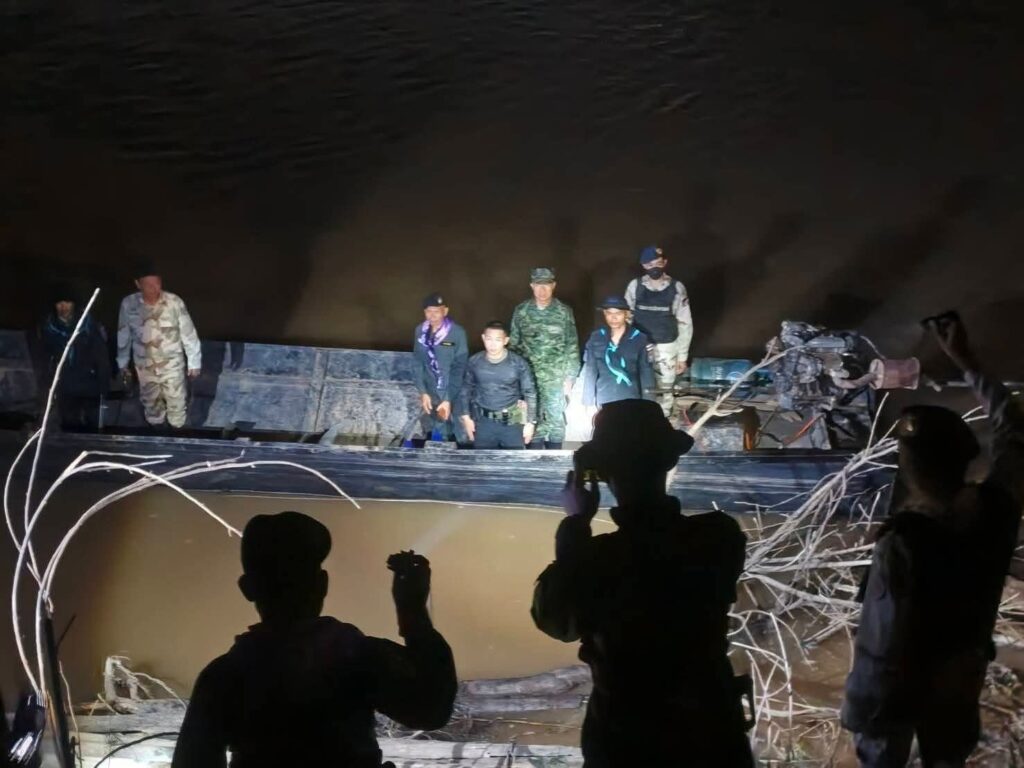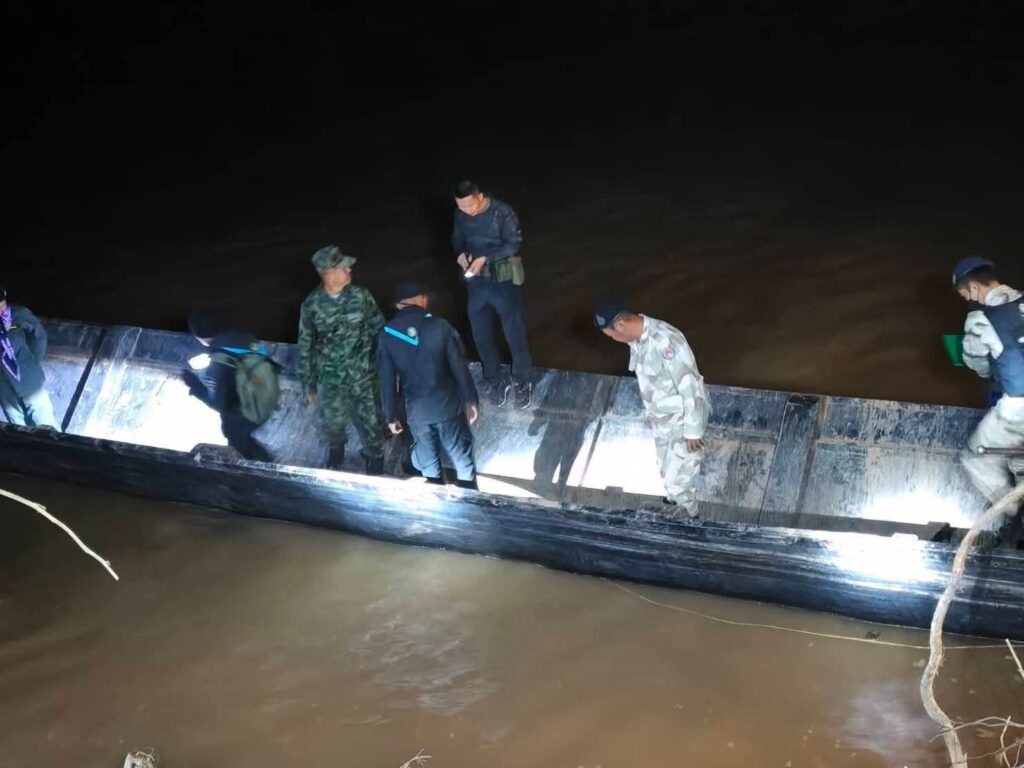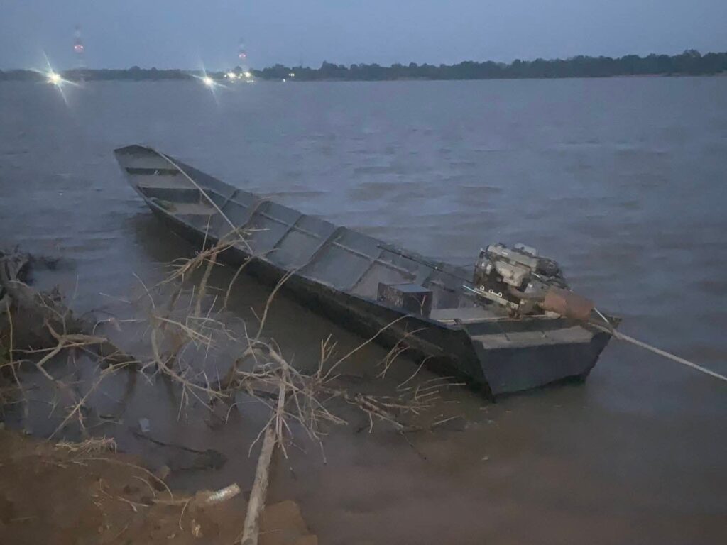 จากการตรวจสอบพื้นที่ พบ เรือเหล็กขนาดใหญ่ติดเครื่องยนต์ จอดทิ้งไว้ริมฝั่งแม่น้ำ ภายในเรือพบไม้พะยูงจำนวนหลายท่อนวางซ้อนกันกลางลำเรือ