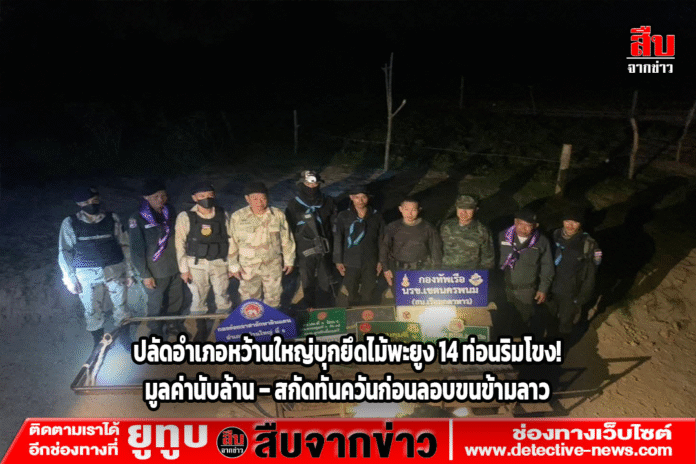 ปลัดอำเภอฝ่ายความมั่นคง อ.หว้านใหญ่ จ.มุกดาหาร นำทีมเจ้าหน้าที่หลายหน่วยสนธิกำลังบุกยึดไม้พะยูง 14 ท่อน มูลค่านับล้านบาท ริมตลิ่งแม่น้ำโขง หลังสืบทราบกลุ่มขบวนการลักลอบขนไม้เตรียมส่งข้ามไป สปป.ลาว