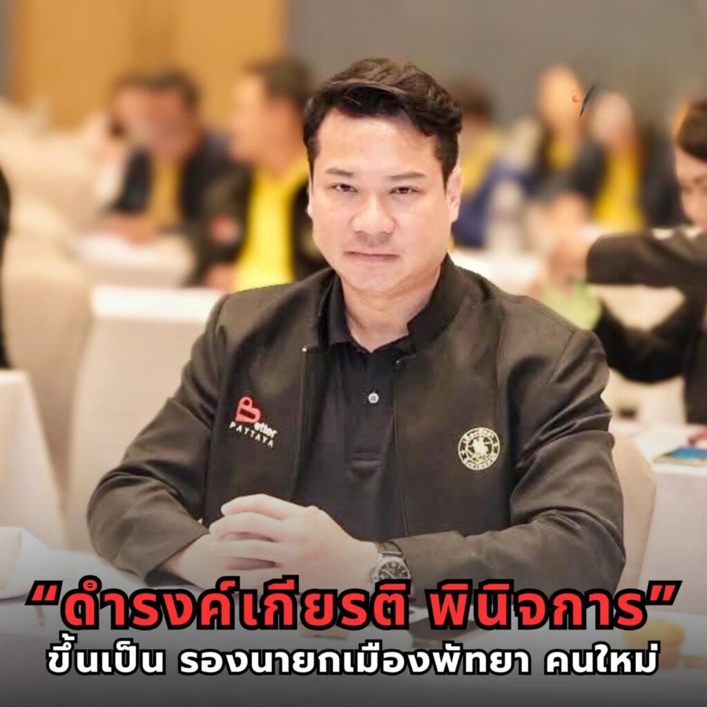 เมืองพัทยาออกคำสั่งแต่งตั้ง “นายดำรงค์เกียรติ พินิจการ” ขึ้นดำรงตำแหน่งรองนายกเมืองพัทยาคนใหม่ มีผลตั้งแต่วันที่ 1 ธันวาคม 2568 เพื่อร่วมขับเคลื่อนนโยบายสำคัญและเสริมประสิทธิภาพการบริหารราชการเมืองให้ก้าวทันการพัฒนาในทุกมิติ