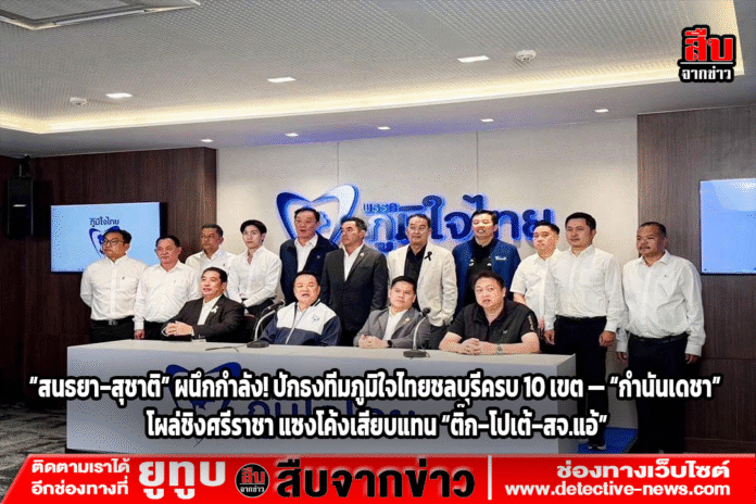 เกมการเมืองชลบุรีเดือด! “สนธยา คุณปลื้ม” จับมือ “สุชาติ ชมกลิ่น” ประกาศความพร้อมพรรคภูมิใจไทย ส่งผู้สมัครครบ 10 เขตทั่วจังหวัด หลัง “ครูใหญ่เนวิน” เชื่อมสัมพันธ์สองขั้วการเมืองให้กลับมาร่วมงานอีกครั้ง พร้อมเปิดตัว “กำนันเดชา” ลงสนามเขตศรีราชาแทน “รมต.ติ๊ก–โปเต้–สจ.แอ้” ที่หลุดโผรายชื่อ