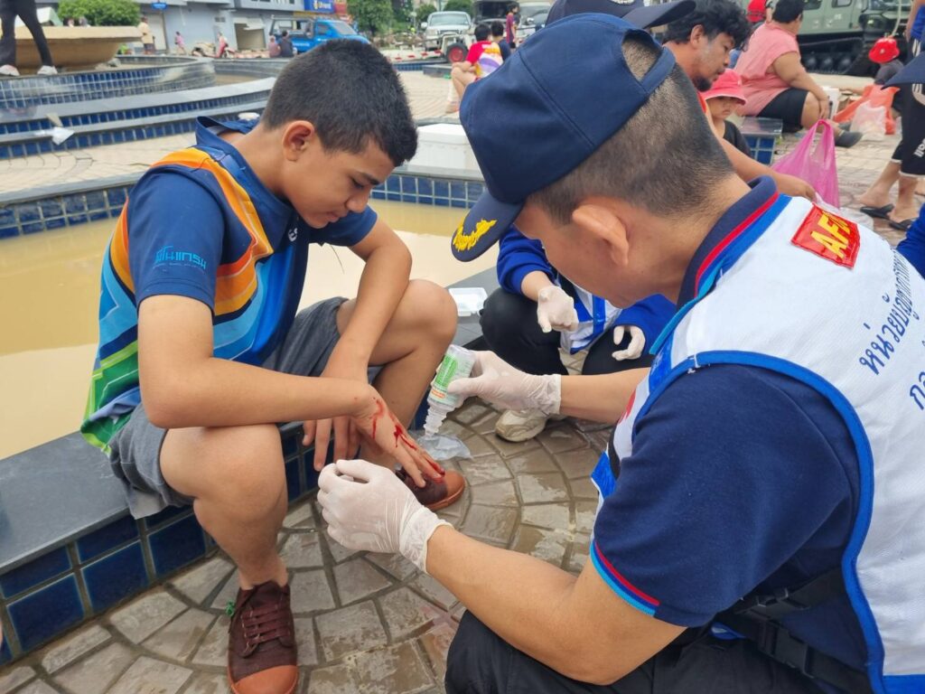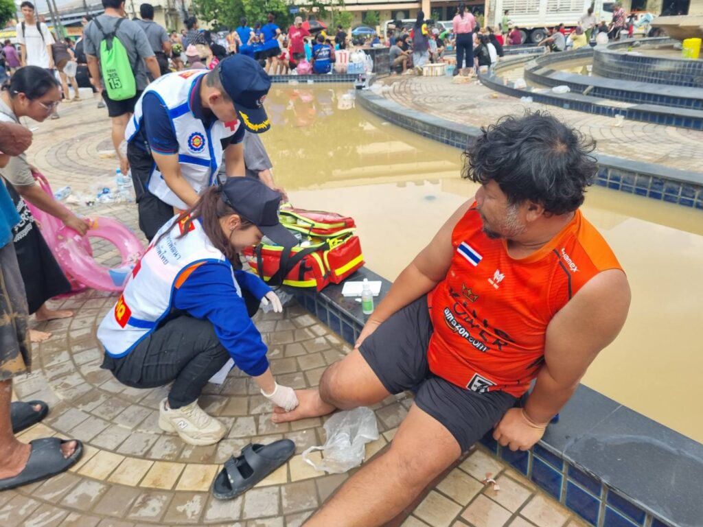 พร้อมกันนี้ หน่วยได้ จัดตั้งจุดบริการทางการแพทย์และปฐมพยาบาลเบื้องต้น เพื่อรองรับประชาชนที่ต้องการทำแผล การรักษาโรคทั่วไป และรับยาอย่างเร่งด่วน เพื่อขยายการดูแลให้ครอบคลุมยิ่งขึ้น หน่วยได้ ตั้งจุดบริการเพิ่มเติมบริเวณวงเวียนในพื้นที่หาดใหญ่ ทำให้ประชาชนในเขตเมืองสามารถเข้าถึงการรักษาได้สะดวกและรวดเร็วยิ่งขึ้น ควบคู่ไปกับการดูแลด้านสุขภาพ ทีมแพทย์ยังได้ เคลื่อนย้ายกลุ่มเปราะบาง ได้แก่ ผู้สูงอายุ ผู้ป่วยติดเตียง และเด็ก จากบ้านเรือนที่ยังมีน้ำท่วมสูง ไปยังศูนย์พักพิงชั่วคราวและสถานพยาบาลที่ปลอดภัย เพื่อป้องกันความเสี่ยงด้านสุขภาพและอันตรายจากกระแสน้ำ