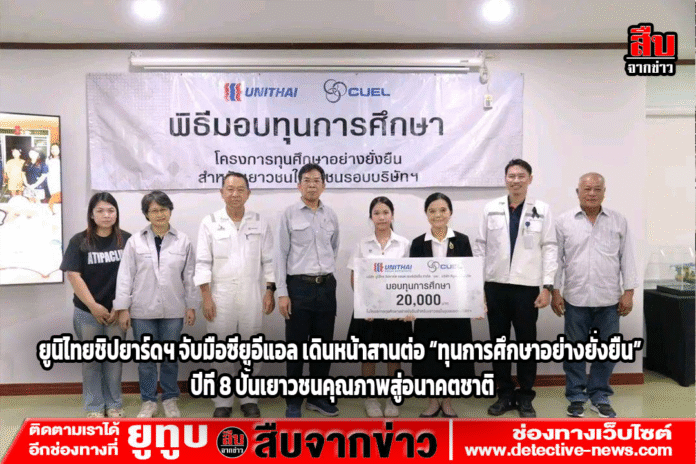 ยูนิไทยชิปยาร์ดฯ ร่วมกับซียูอีแอล สานต่อเจตนารมณ์ “ให้โอกาส…สร้างอนาคต” จัดพิธีมอบทุนการศึกษาในโครงการ “ทุนการศึกษาอย่างยั่งยืน ประจำปี 2568” ต่อเนื่องเป็นปีที่ 8 มอบทุนแก่เยาวชนในพื้นที่ 11 ชุมชนรอบนิคมฯ รวมมูลค่ากว่า 220,000 บาท เพื่อยกระดับคุณภาพการศึกษาและพัฒนาเยาวชนให้เป็นกำลังสำคัญของประเทศ