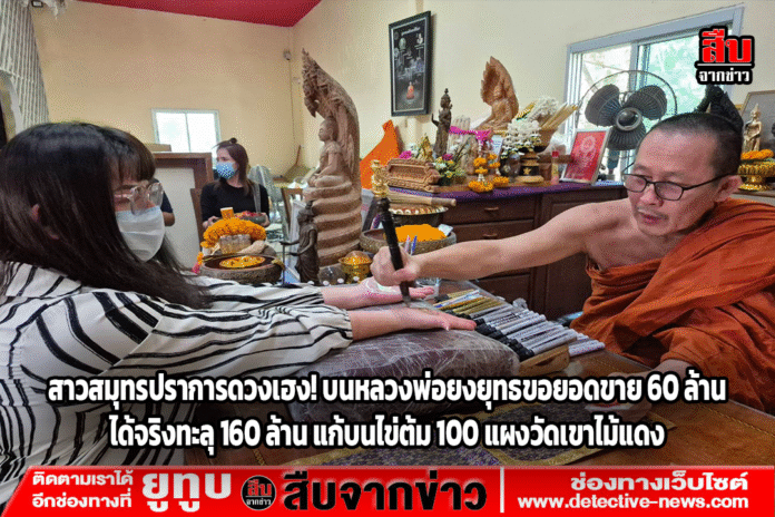 แรงศรัทธาพาเฮง! พนักงานสาวเมืองสมุทรปราการบนบาน “หลวงพ่อยงยุทธ” วัดเขาไม้แดง ขอให้ยอดออเดอร์ทะลุ 60 ล้านบาท ปรากฏสมหวังเกินคาด ได้จริง 160 ล้านบาทเต็ม ๆ จึงรีบหอบไข่ต้ม 100 แผงมาแก้บน พร้อมถวายกุมารโข่ง เทพเจ้าแห่งโชคลาภ และทำพิธีเจิมเสริมดวงความรุ่งเรือง