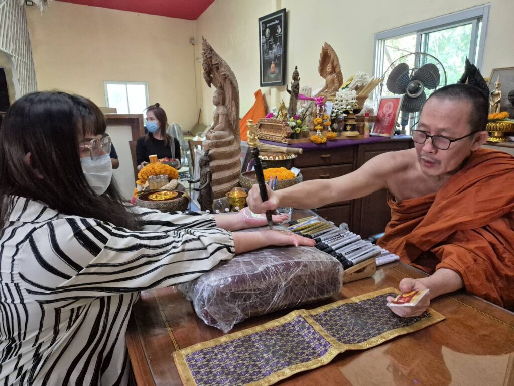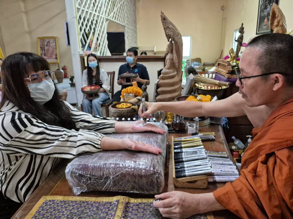 หลวงพ่อสง่า เจ้าอาวาสวัดเขาไม้แดง และ พระครูปลัดนพภัณฑ์ (พระครูบิว) ศิษย์เอกของหลวงพ่อสง่า เพื่อความเป็นสิริมงคลและเสริมโชคลาภในการทำงานและชีวิต