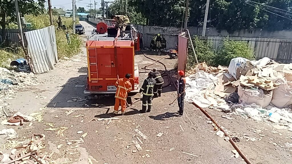 เมื่อเวลา 11.00 น. วันที่ 9 พฤศจิกายน 2568 พ.ต.ต. ชัชชาติ ศรีพลัง สวป. ช่วยราชการ สภ.บ่อวิน จังหวัดชลบุรี ได้รับแจ้งเหตุเพลิงไหม้ โรงงานรับซื้อของเก่า ภายในหมู่ 4 ตำบลบ่อวิน อำเภอศรีราชา จึงรายงานเหตุให้ พ.ต.อ.กฤศ ธิติทัศนะ ผกก.สภ.บ่อวิน ทราบ พร้อมประสานกำลังรถดับเพลิงจากหลายพื้นที่เข้าระงับเหตุ