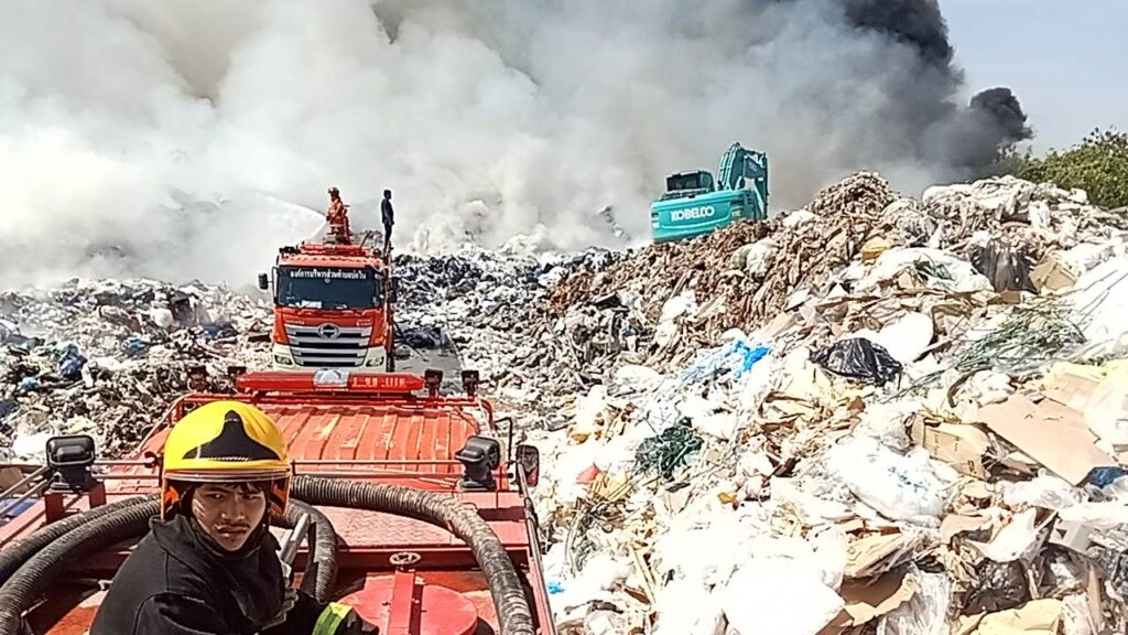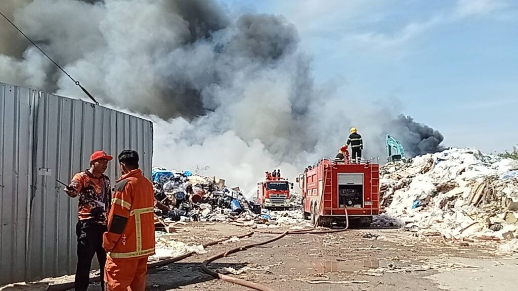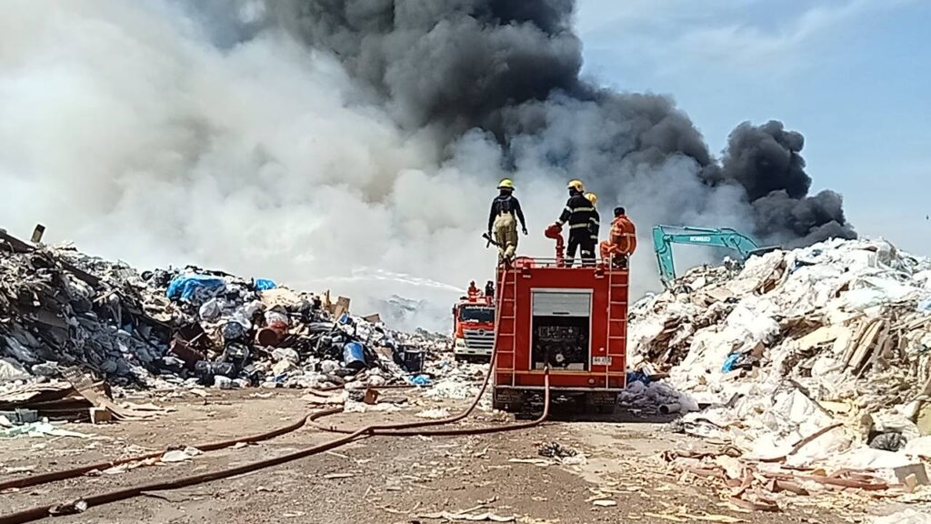 ไฟไหม้ใหญ่กลางวันแสก ๆ ที่โกดังรับซื้อของเก่าพื้นที่บ่อวิน อ.ศรีราชา เพลิงโหมลุกไหม้อย่างรุนแรงจากกองพลาสติกและกระดาษเก่าจำนวนมหาศาล ท่ามกลางกระแสลมแรง เจ้าหน้าที่ต้องระดมรถดับเพลิงจากหลายหน่วยกว่า 10 คัน เข้าฉีดน้ำสกัดเพลิง คาดใช้เวลาหลายชั่วโมงกว่าจะควบคุมได้