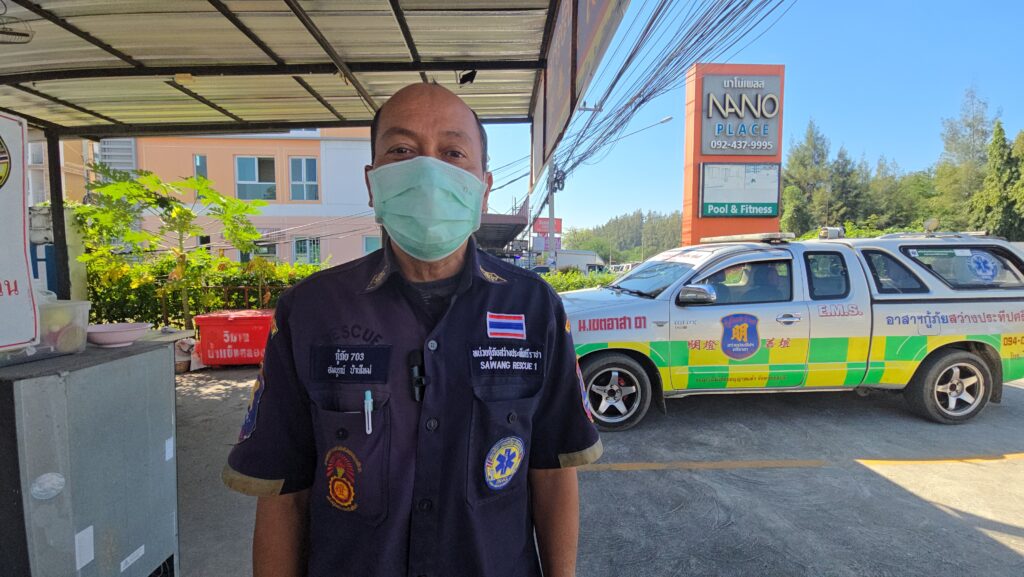 “หลังจากผมขับแซงรถจักรยานยนต์คันนั้นไป และกำลังจะเลี้ยวกลับเข้าเลนปกติ จู่ ๆ รถจักรยานยนต์คันดังกล่าวก็ ขี่แซงขึ้นมาทางขวาแล้วปาดหน้ารถกู้ภัยทันที ทำให้ผมต้องเบรกรถกะทันหัน” นายสมบูรณ์กล่าวด้วยความตกใจ