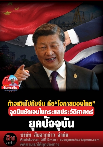 “…..โอกาสที่ประเทศไทยจะเจริญก้าวหน้าเทียมบ่าเทียมไหล่กับชาติอารยะระดับแนวหน้าของโลกก็มีมาก นี่คือความจริง มิใช่ความฝัน! ทั้งนี้เพราะการยืนอยู่บนความถูกต้องของประวัติศาสตร์ จะเป็นรากฐานมั่นคงให้เราก้าวไปสู่อนาคตได้อย่างดีที่สุด ตรงที่สุด เริ่มตรงที่ยึดเอาประชาชนเป็นศูนย์กลาง ดำเนินการพัฒนาพลังการผลิตคุณภาพสูง โดยการนำเอาวิทยาศาสตร์เทคโนโลยีล้ำยุคมาปรับใช้ในการพัฒนาเศรษฐกิจ เร่งพัฒนาคนโดยเร็วด้วยแผนการปฏิรูปการศึกษาที่ใช้เทคโนโลยี่เอไอเป็นตัวนำ และที่สำคัญยิ่งยวดคือการดำเนินนโยบายประสานเชื่อมเข้ากับกระแสการขับเคลื่อนของประชาคมโลกที่มีอนาคตร่วมกัน ซึ่งปัจจุบันจีนกำลังแสดงบทบาทเป็นหัวเรือใหญ่ ไปพร้อมๆกับการสร้างเวทีที่ทุกประเทศสามารถร่วมคิด ร่วมทำ และร่วมแบ่งปันผลพวงที่เกิดขึ้นได้อย่างเสมอภาคกัน นี่คือโอกาสของประเทศไทย…”