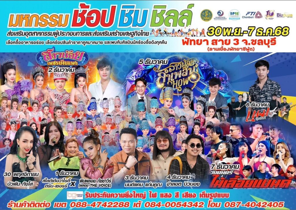ผู้สื่อข่าวรายงานว่า ที่บริเวณ ลานกิจกรรมตรงข้ามร้านอัมพรซีฟู้ด ถนนพัทยาสาย 3 ช่วงระหว่างพัทยาเหนือ–พัทยากลาง ได้มีการจัดงาน “มหกรรม ช็อป ชิม ชิลล์” โดยสภาอุตสาหกรรม ซึ่งเริ่มขึ้นตั้งแต่วันที่ 30 พฤศจิกายน – 7 ธันวาคม บรรยากาศภายในงานเต็มไปด้วยความคึกคัก มีร้านอาหาร เสื้อผ้า ของที่ระลึก และสินค้าโอทอปหลากหลายชนิด รวมถึงเวทีคอนเสิร์ตที่สร้างความบันเทิงให้กับนักท่องเที่ยวและชาวพัทยาเป็นจำนวนมาก
