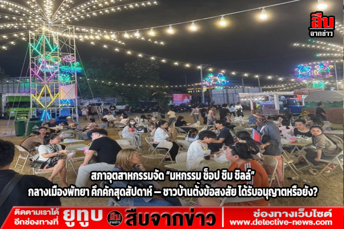 งานใหญ่กลางเมืองพัทยา “มหกรรม ช็อป ชิม ชิลล์” ที่สภาอุตสาหกรรมจัดขึ้นเรียกสีสันปลายปี ดึงนักท่องเที่ยวแห่ร่วมคึกคัก แต่ท่ามกลางความครึกครื้น กลับมีเสียงถามจากชาวบ้านผ่านโซเชียล ว่างานนี้ผ่านการขออนุญาตถูกต้องตามระเบียบหรือไม่