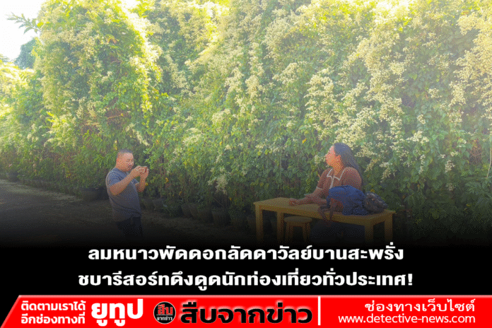 ผู้สื่อข่าวรายงานว่า ขณะนี้หลายจังหวัดทั่วประเทศ รวมถึงจังหวัดจันทบุรี เริ่มมีอากาศหนาวเย็นต่อเนื่อง ส่งผลให้ “ดอกลัดดาวัลย์” ไม้ดอกสีขาวบริสุทธิ์ที่ขึ้นชื่อเรื่องความงดงามและจะบานเพียงปีละครั้ง ออกดอกสะพรั่งเต็มต้นรับลมหนาว สร้างสีสันให้การท่องเที่ยวในพื้นที่เป็นอย่างมาก