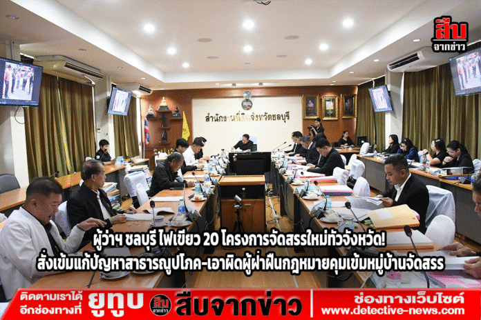 ผู้ว่าราชการจังหวัดชลบุรี “นายนริศ นิรามัยวงศ์” นั่งหัวโต๊ะประชุมคณะกรรมการจัดสรรที่ดินจังหวัด เคาะอนุมัติ 20 โครงการจัดสรรใหม่ทั่วจังหวัด พร้อมสั่งเร่งตรวจสอบและแก้ไขปัญหาสาธารณูปโภคในหมู่บ้านจัดสรรอย่างเด็ดขาด ย้ำเอาผิดผู้จัดสรรที่ฝ่าฝืนกฎหมาย เพื่อคุ้มครองสิทธิประชาชนและสร้างความโปร่งใสในภาคอสังหาริมทรัพย์