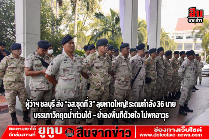 ผู้ว่าราชการจังหวัดชลบุรี สั่งระดมกำลังอาสารักษาดินแดน (อส.) ชุดที่ 3 จำนวน 36 นาย ลงพื้นที่จังหวัดสงขลา ช่วยเหลือผู้ประสบอุทกภัยในอำเภอหาดใหญ่ พร้อมมอบโอวาทให้ปฏิบัติภารกิจด้วยระเบียบวินัยและหัวใจอาสา เพื่อบรรเทาความเดือดร้อนของพี่น้องภาคใต้ที่กำลังเผชิญน้ำท่วมใหญ่