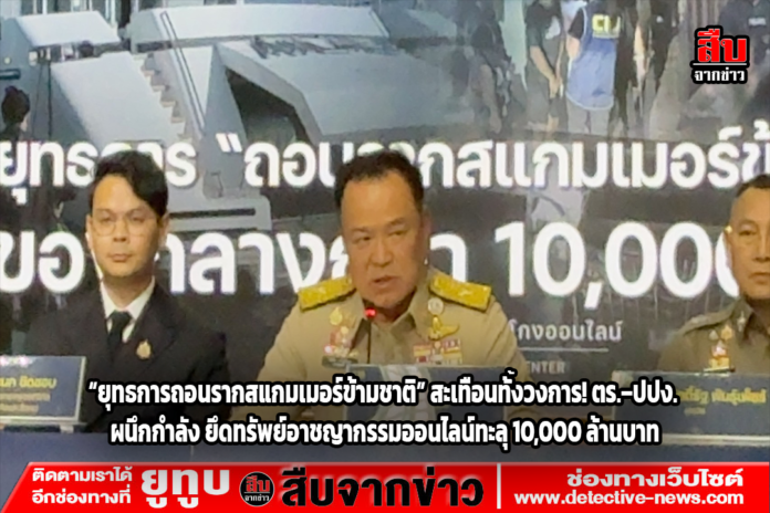 สำนักงานตำรวจแห่งชาติ (ศปอส.ตร.) ผนึกกำลังสำนักงาน ปปง. เปิดยุทธการครั้งใหญ่ “ถอนรากสแกมเมอร์ข้ามชาติ” กวาดล้างเครือข่ายฟอกเงินจากแก๊งสแกมเมอร์กัมพูชา เชื่อมโยงนักธุรกิจต่างชาติระดับโลก ยึดทรัพย์มูลค่ากว่า 1 หมื่นล้านบาท พร้อมออกหมายจับ 42 ราย จับได้แล้ว 29 ราย — สะเทือนทั้งวงการอาชญากรรมเทคโนโลยี!