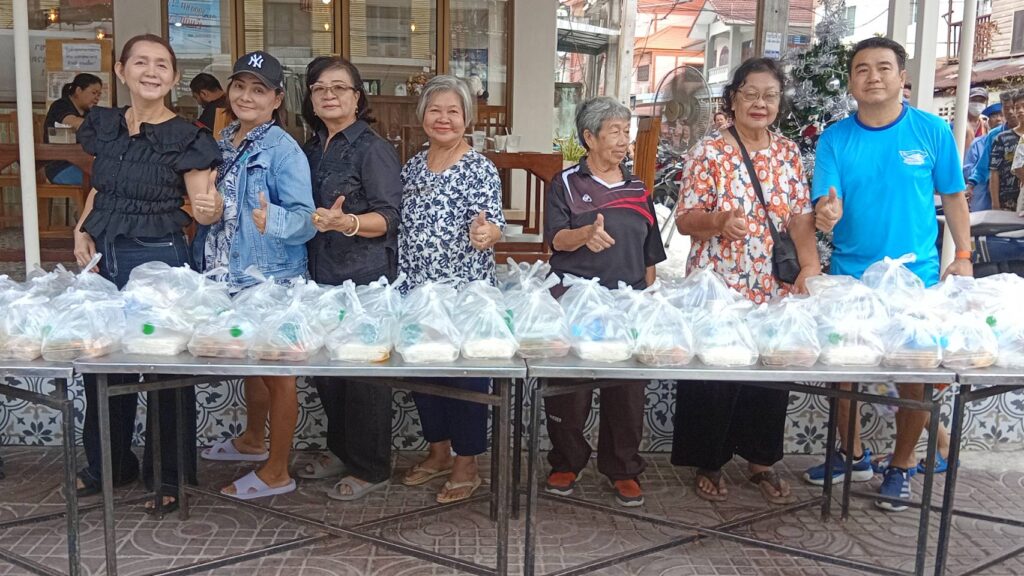 ในปีนี้ ร้านได้รับความร่วมมือจากกลุ่ม “ก้อนดินของพ่อ ม.รุ่น 2 & ระนอง 2527”, ลูกค้าขาประจำ, กัลยาณมิตร รวมถึงชาวชุมชนไฟแดงเก่าศรีราชา ที่มาช่วยกันทำอาหารและตักข้าวแกงบริการผู้มาเยือน