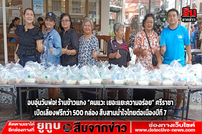 บรรยากาศอบอวลด้วยรอยยิ้มแห่งความสุขในวันพ่อแห่งชาติ ร้านข้าวแกงชื่อดัง “คนแวะ เยอะแยะความอร่อย” ใจกลางศรีราชา เปิดเลี้ยงอาหารฟรีกว่า 500 กล่อง ให้ประชาชนอิ่มอร่อยไม่อั้นตลอดมื้อเช้าถึงเที่ยง สานต่อกิจกรรมแห่งความดีที่จัดขึ้นต่อเนื่องเป็นปีที่ 7 เพื่อถวายเป็นพระราชกุศลแด่ในหลวง ร.9