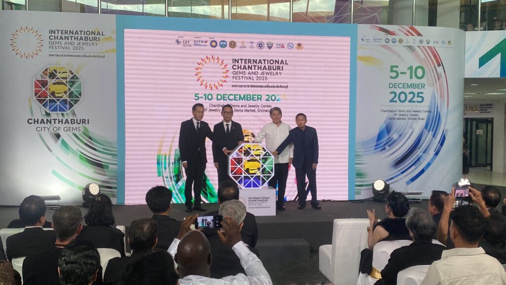 เมื่อวันที่ 5 ธันวาคม 2568 ที่จังหวัดจันทบุรี สถาบันวิจัยและพัฒนาอัญมณีและเครื่องประดับแห่งชาติ (องค์การมหาชน) หรือ GIT ร่วมกับ กรมส่งเสริมการค้าระหว่างประเทศ, จังหวัดจันทบุรี, สมาคมผู้ค้าอัญมณีและเครื่องประดับจันทบุรี และพันธมิตรทั้งภาครัฐ–เอกชน เปิดงาน “เทศกาลนานาชาติพลอยและเครื่องประดับจันทบุรี 2025” อย่างยิ่งใหญ่ โดยมี นายเอกฉัตร ศีตวรรัตน์ รองปลัดกระทรวงพาณิชย์ เป็นประธานในพิธีเปิด