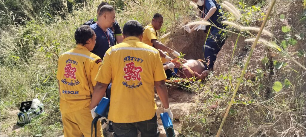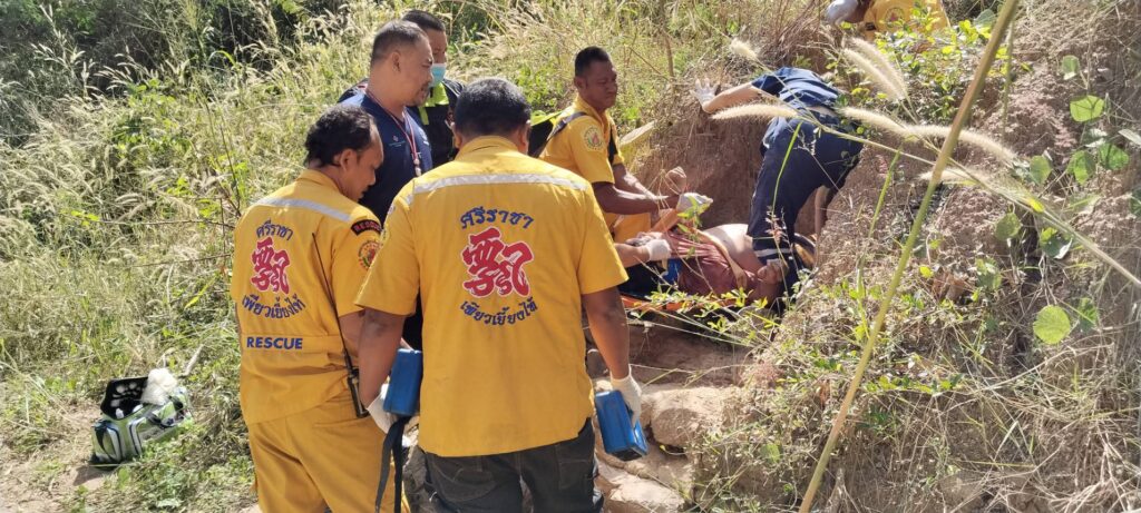 เมื่อเวลา 11.30 น. ของวันที่ 7 ธันวาคม 2568 ทีมกู้ภัยเพียวเยี้ยงไท้ศรีราชาได้รับแจ้งเหตุขอความช่วยเหลือจากสถานที่ท่องเที่ยวเอกชนแห่งหนึ่ง บริเวณซอยพ่อแก่ ริมถนนสายเนินตอง-หุบบอน หมู่ 4 ต.หนองขาม อ.ศรีราชา จ.ชลบุรี ว่ามีชายมึนเมาพลัดตกลงไปในร่องน้ำลึกประมาณ 4 เมตร มีอาการคล้ายจะหมดสติ