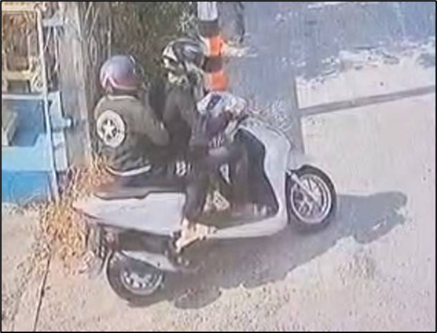 ผู้เสียหาย Mr. MYING AUNG ให้การว่า มารดาของตนถูกชายหญิงสองคนพูดภาษาพม่าทำทีเข้ามาติดต่อเช่าห้อง ก่อนฉวยโอกาสกระชากสร้อยทองหนัก 3 บาทแล้วขี่จักรยานยนต์หลบหนีไป กล้องวงจรปิดสามารถจับภาพคนร้ายและพาหนะที่ใช้ก่อเหตุได้อย่างชัดเจน ทำให้ตำรวจมีเบาะแสสำคัญในการสืบสวน