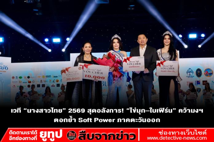 (10 ธ.ค. 68) เวทีการประกวด “นางสาวไทยชลบุรี–จันทบุรี ประจำปี 2569” เปิดฉากอย่างยิ่งใหญ่ ณ ศูนย์การค้าแปซิฟิค พาร์ค ศรีราชา โดย นางสาวขวัญเรือน ศรีจันทร์ ปลัดจังหวัดชลบุรี นำเปิดงานตอกย้ำว่าเวทีนี้คือการคัดเลือก “ผู้หญิงไทยยุคใหม่” ที่ครบเครื่องทั้งความงาม ความสามารถ และจิตอาสา เพื่อเป็นพลังขับเคลื่อนภาพลักษณ์ วัฒนธรรม และการท่องเที่ยวของสองจังหวัดภาคตะวันออก ผู้เข้าประกวด 18 คนสร้างความตื่นตาตื่นใจในทุกรอบการแข่งขัน ก่อนที่มงกุฎอันทรงเกียรติจะตกเป็นของ “ไข่มุก-มีซุโฮะ ซากาโมโต้” (นางสาวไทยจันทบุรี) และ “ใบเฟิร์น-จารวี สุริโย” (นางสาวไทยชลบุรี) ที่พร้อมเป็นตัวแทนก้าวสู่เวทีระดับชาติ