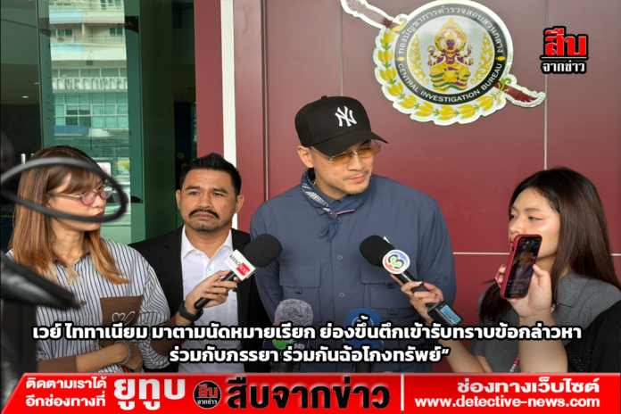 รายงานข่าวแจ้งด้วยว่า เมื่อถึงกำหนดเวลาเข้าพบพนักงานสอบสวน เวย์ ไทเทเนียม ก็ใช้สูตรเดิมคือแอบเข้าทางด้านหลังของอาคารกองบัญขาการตำรวจสอบสวนกลาง ก่อนจะรีบขึ้นลิฟต์ไปยังชั้นที่ 9 ซึ่งเป็นที่ตั้งบก.ปอศ.และเข้าพบกับพนักงานสอบสวน ที่รอสอบปากคำอยู่ทันที