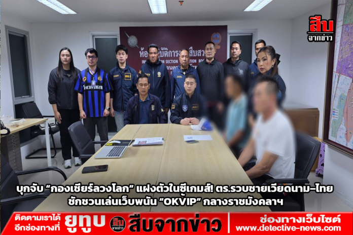 ตำรวจไซเบอร์ร่วมมือฝ่ายสืบสวน สน.หัวหมาก บุกจับชายเวียดนามและชายไทย แฝงตัวเป็นกองเชียร์ฟุตบอลซีเกมส์ในสนามราชมังคลากีฬาสถาน ก่อนลอบโฆษณา–ชักชวนเล่นเว็บพนัน “OKVIP” พบของกลางเป็นเสื้อและหมวกสกรีนโลโก้เว็บดัง เบื้องต้นแจ้งข้อหาชักชวนเล่นการพนัน ดำเนินคดีตามกฎหมายทันที