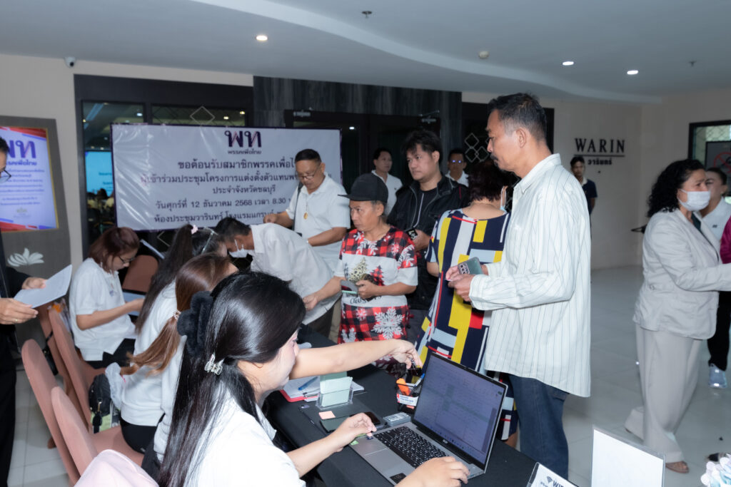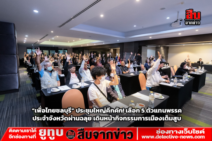 พรรคเพื่อไทยจังหวัดชลบุรีจัดประชุมสมาชิกพรรคอย่างคึกคัก โดยมีสมาชิกและผู้สนับสนุนกว่า 100 คนเข้าร่วม เพื่อดำเนินการเลือก “ตัวแทนพรรคการเมืองประจำจังหวัดชลบุรี” ตามกฎหมายพรรคการเมือง