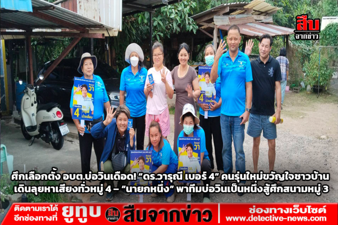 ในเขตเลือกตั้งที่ 2 หมู่ 4 ต.บ่อวิน อ.ศรีราชา ดร.วารุณี ม่วงเอี่ยม ผู้สมัครสมาชิกสภา อบต.บ่อวิน เบอร์ 4 (ผู้สมัครอิสระ) พร้อมทีมงานลงพื้นที่เดินเคาะประตูบ้านพบปะประชาชน เพื่อแนะนำตัวและนำนโยบาย “คิดใหม่ ทำจริง ทุ่มเท เพื่อบ้านเรา” เข้าถึงทุกครัวเรือน ซึ่งได้รับการตอบรับอย่างอบอุ่นจากชาวบ้านจำนวนมาก โดยต่างชื่นชมในความตั้งใจของคนรุ่นใหม่ที่พร้อมอาสาเข้ามาพัฒนาท้องถิ่นอย่างจริงจัง
