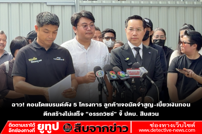“อรรถวิชช์” พา ผสห.ร้อง บก.ปคบ. สอบกลุ่มบริษัทอสังหาฯ เจ้าของคอนโดแบรนด์ดัง 5 โครงการ ย่านลาดพร้าว-รัชดาฯ หลังพบปัญหาเบี้ยวสร้าง-อมเงินกู้ส่วนต่าง-น้ำท่วมตึก เสียหายยับ