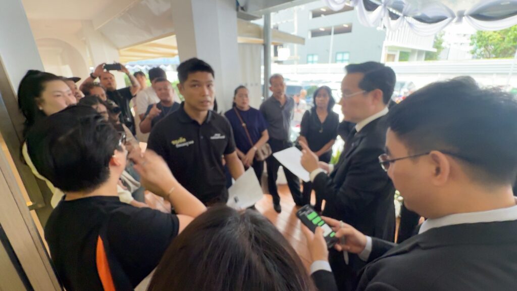 ทั้งนี้ กลุ่มผู้เสียหายได้เข้าแจ้งความลงบันทึกประจำวันไว้ที่ สน.สุทธิสาร แล้วเมื่อวันที่ 11 ธันวาคม ที่ผ่านมา ก่อนจะรวมตัวกันมาร้องเรียนที่ ปคบ. ในวันนี้ เพื่อให้เร่งดำเนินคดีให้ถึงที่สุด