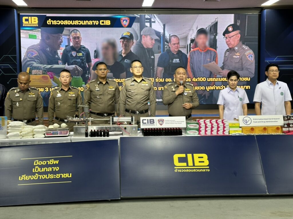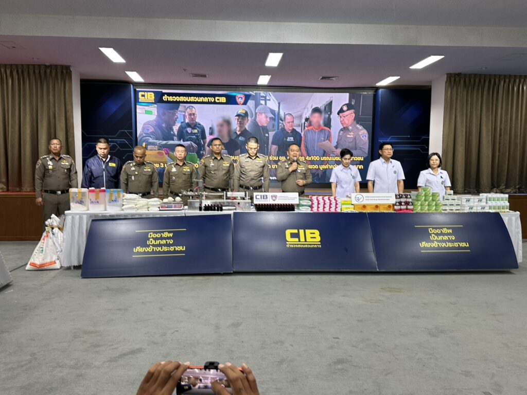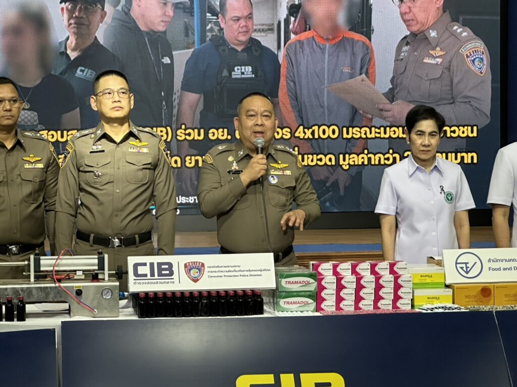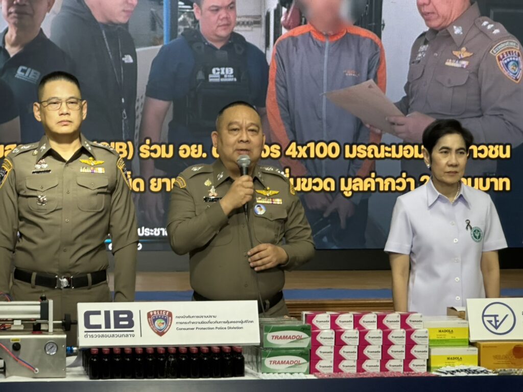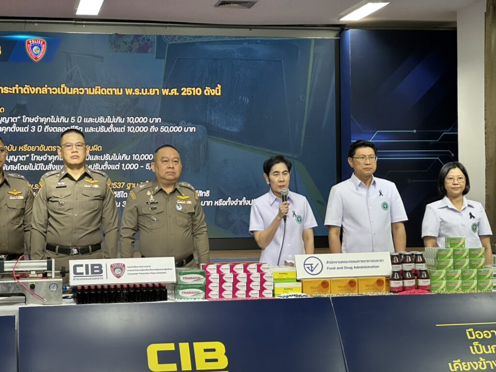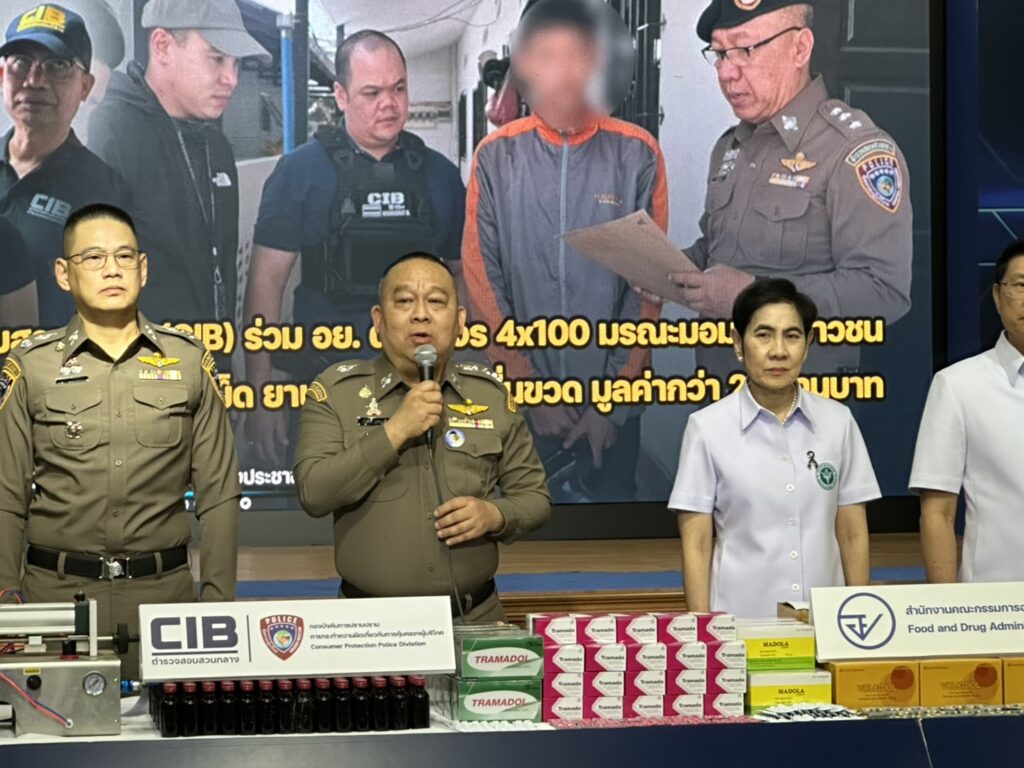 ตำรวจสอบสวนกลาง (CIB) ร่วมสำนักงานคณะกรรมการอาหารและยา (อย.) เปิดปฏิบัติการครั้งใหญ่ทลาย 3 เครือข่ายค้ายา “4×100” มรณะ ลักลอบขายยาเขียวเหลือง–ยาแก้ไอ ผสมใบกระท่อมมอมเมาเยาวชน บุกค้น 10 จุดทั่ว 4 จังหวัด ยึดยาเกินล้านเม็ด ยาแก้ไอกว่า 1 หมื่นขวด มูลค่ากว่า 20 ล้านบาท พร้อมจับผู้ต้องหา 1 ราย เตรียมขยายผลเอาผิดผู้ร่วมขบวนการทั้งหมด