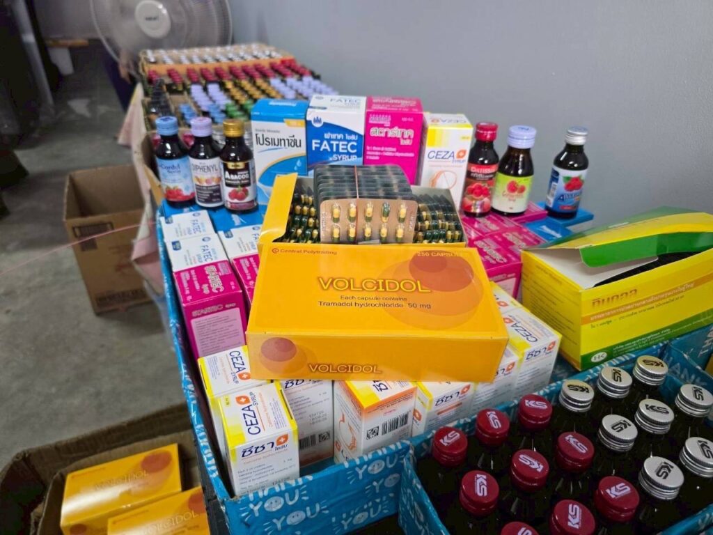 - พบ ยาทรามาดอลกว่า 4,800 แคปซูล, ยาแก้ไอ–ยาแก้แพ้กว่า 3,800 ขวด, และ น้ำกระท่อมปรุงแต่งพร้อมจำหน่าย