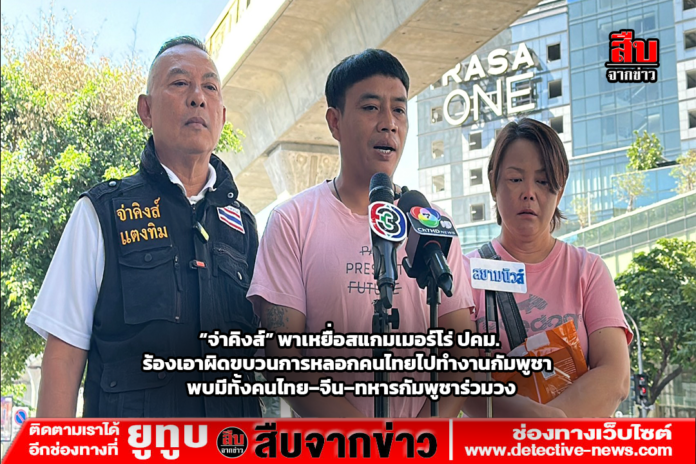 “จ่าคิงส์ แตงทิม สะพานใหม่” อดีตทหารอากาศ พา 2 เหยื่อสแกมเมอร์ พร้อมแม่และภรรยาของชายชลบุรีที่ถูกหลอกไปทำงานกัมพูชา เข้าแจ้งความกับตำรวจ ปคม. ร้องดำเนินคดีขบวนการค้ามนุษย์ข้ามชาติ หลังพบเบาะแสมีทั้งคนไทย–จีน–กัมพูชา และทหารกัมพูชาเกี่ยวข้อง