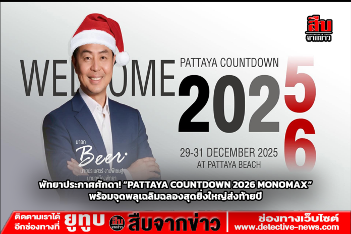 เมืองพัทยา จับมือ อบจ.ชลบุรี และ MONOMAX เตรียมระเบิดความมันส์ส่งท้ายปี กับงานเคานต์ดาวน์ระดับประเทศ “PATTAYA COUNTDOWN 2026 MONOMAX” จัดเต็มแสง สี เสียง โชว์สุดอลังการ 3 วัน 3 คืน บริเวณชายหาดพัทยา วันที่ 29–31 ธันวาคม 2568