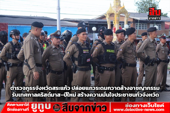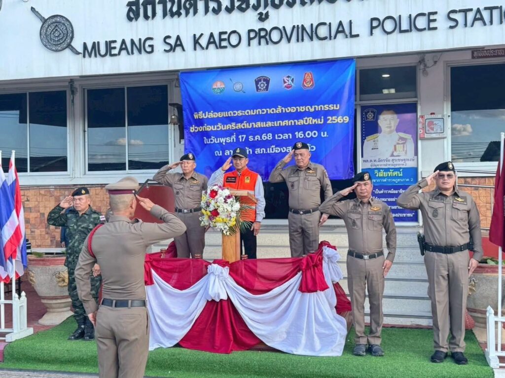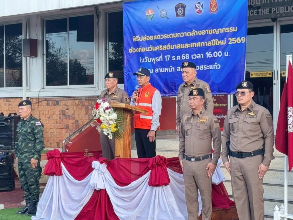 ตำรวจภูธรจังหวัดสระแก้ว บูรณาการกำลังร่วมหลายฝ่าย ปล่อยแถวระดมกวาดล้างอาชญากรรมทั่วจังหวัด รับมือเทศกาลคริสต์มาสและปีใหม่ 2569 มุ่งสร้างความปลอดภัยและความอุ่นใจให้ประชาชนตลอดช่วงวันหยุดยาว