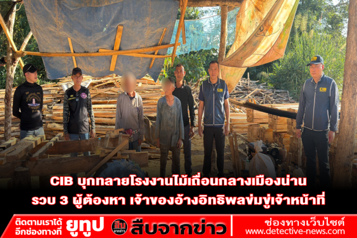 กองบังคับการปราบปรามการกระทำความผิดเกี่ยวกับทรัพยากรธรรมชาติและสิ่งแวดล้อม (บก.ปทส.) สนธิกำลังเข้าตรวจค้นโรงงานแปรรูปไม้ผิดกฎหมายริมถนนหลวงจังหวัดน่าน หลังพบพฤติกรรมอวดอ้างผู้มีอิทธิพลหนุนหลัง ไม่เกรงกลัวกฎหมาย