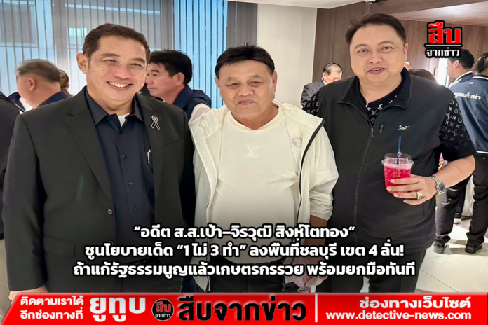 “จิรวุฒิ สิงห์โตทอง” หรือ “อดีต ส.ส.เป้า” ว่าที่ผู้สมัคร ส.ส.ชลบุรี เขต 4 พรรคภูมิใจไทย เปิดตัวนโยบาย “1 ไม่ 3 ทำ” เดินหน้าเข้าหาประชาชน ชูนโยบายเน้นเศรษฐกิจฐานราก สิ่งแวดล้อม และแรงงาน พร้อมจุดยืนชัด “ไม่แก้รัฐธรรมนูญเพื่อการเมือง แต่พร้อมยกมือ หากทำให้เกษตรกรอยู่ดีกินดี”
