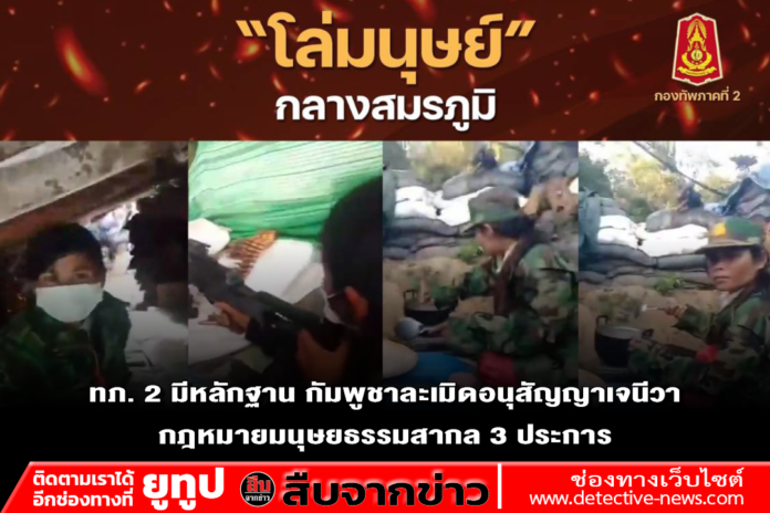 เมื่อวันที่ 20 ธ.ค.2568 กองทัพภาคที่ 2 เปิดเผยข้อมูลสถานการณ์การสู้รบบริเวณชายแดนไทย–กัมพูชา ตลอดระยะเวลา 13 วันที่ผ่านมา นับตั้งแต่วันที่ 8 ธ.ค. โดยระบุว่า พบพฤติกรรมการปฏิบัติการทางทหารของฝ่ายกัมพูชาที่เข้าข่ายละเมิดอนุสัญญาเจนีวา และกฎหมายมนุษยธรรมระหว่างประเทศ (International Humanitarian Law: IHL) อย่างชัดเจนหลายประการ
