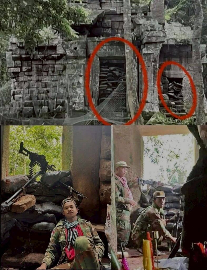 จากการตรวจสอบคลิปวิดีโอและภาพถ่ายการปฏิบัติการ พบว่าฝ่ายกัมพูชามีการใช้โบราณสถานเป็นที่ตั้งทางทหาร รวมถึงมีการนำผู้หญิงและเด็กเข้าไปอยู่ในพื้นที่การรบ นอกจากนี้ ยังพบการครอบครองและวางทุ่นระเบิด ตลอดจนการประกอบเครื่องกระสุนและวัตถุระเบิดภายในพื้นที่ดังกล่าว