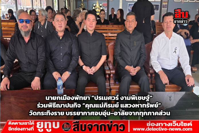 นายปรเมศวร์ งามพิเชษฐ์ นายกเมืองพัทยา ร่วมพิธีฌาปนกิจศพ “คุณแม่ภิรมย์ แสวงหาทรัพย์” อายุ 81 ปี ณ วัดพุทธิวราราม (วัดกระทิงราย) ท่ามกลางบรรยากาศแห่งความอาลัยจากญาติสนิท มิตรสหาย และแขกผู้มีเกียรติที่มาร่วมไว้อาลัยอย่างคับคั่ง