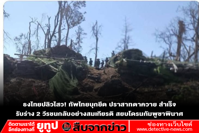 ทหารไทยปักธงเนิน 350 ยึดปราสาทตาควายสำเร็จ นำร่างวีรชน 2 นายกลับประกอบพิธีสมเกียรติยืนยัน คุมสถานการณ์ชายแดนได้ต่อเนื่อง พบปะทะประปรายหลายจุด ตรวจพบกัมพูชาใช้ UAV ไทยทำลายเสาสัญญาณโดรนเนิน 333