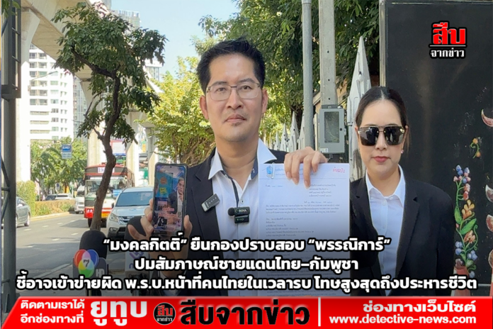 “เต้ มงคลกิตติ์” บุกกองปราบฯ ยื่นหนังสือให้ตรวจสอบ “ช่อ พรรณิการ์” ปมให้สัมภาษณ์ประเด็นชายแดนไทย–กัมพูชา เหตุอาจกระทบขวัญกำลังใจทหารไทยในช่วงประกาศกฎอัยการศึก ชี้เข้าข่ายผิด พ.ร.บ.หน้าที่คนไทยในเวลารบ พ.ศ.2484 ซึ่งมีโทษสูงสุดถึงประหารชีวิต